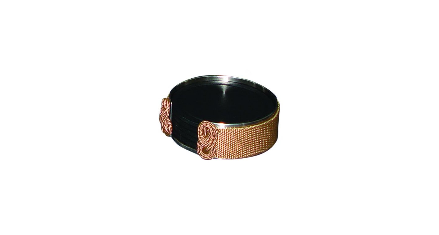 Porta sottobicchieri in acciaio inox con 6 sottobicchieri in gomma nera