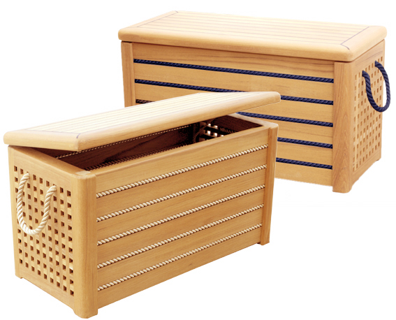 Baule marino in massello di teak con cima blue o miele Dimensione: 75cm x 35cm x h42cm